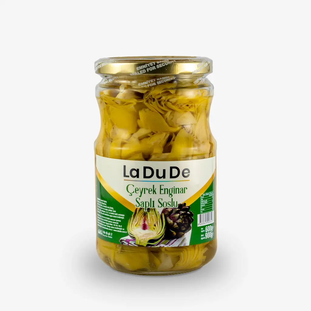 Ege mutfağının sadelik ve doğallık felsefesini tek bir kavanozda buluşturan LA DU DE Çeyrek Enginar (Saplı-Soslu), enginarın en saf halini sofranıza taşıyor. Enginarın çeyrek formda ve tam Ege usulü, yani sapıyla birlikte hazırlanmış olması bu ürünü gerçek bir gurme deneyimine dönüştürür. Doğal, katkısız ve tüketime hazır olan bu özel meze, minimal ama etkileyici sunumlar arayanlar için Seferihisar’ın kalbinden özenle hazırlandı.