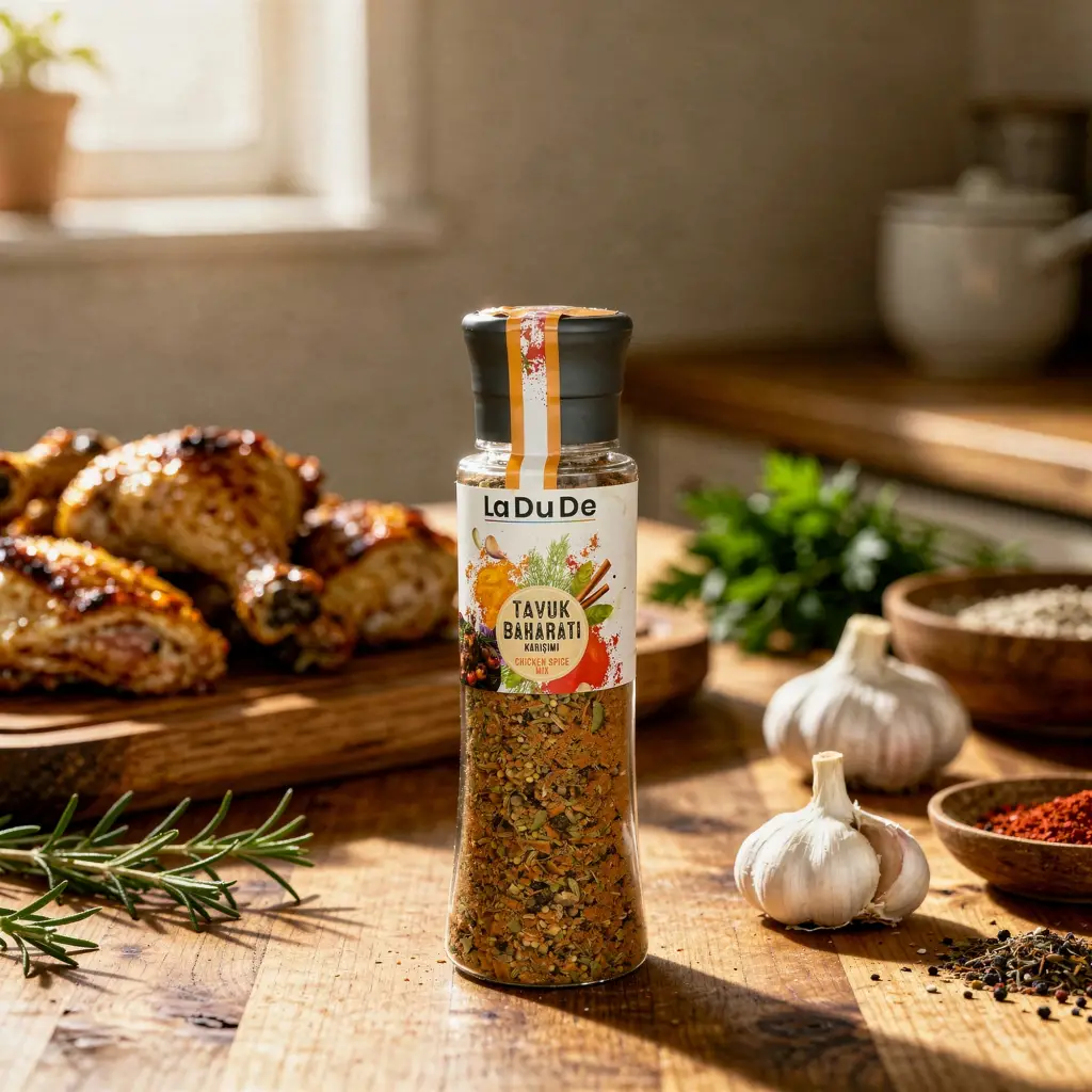 Neden LA DU DE Tavuk Baharatı?- Dengeli Baharat Profili:Tavuk etinin önüne geçmeyen, onu tamamlayan aromatik yapı.