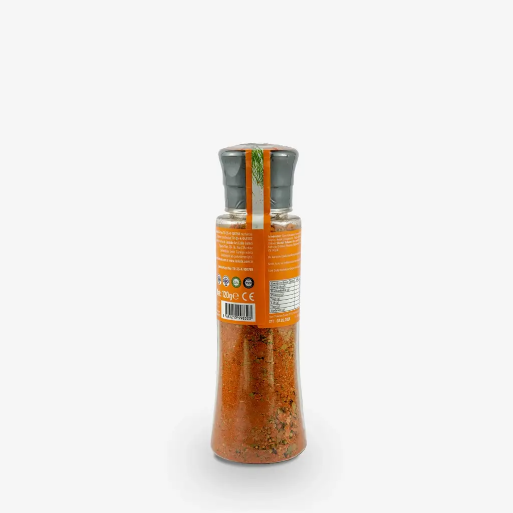 | İçerik: | Tane Karabiber, Kırmızı Biber,Tane Kişniş, Soğan Granül, Sarımsak Granül, Hardal Tohumu, Mercanköşk, Tuz, Limon Kabuğu Granül, Adaçayı, Öğütülmüş Zencefil, Zerdeçal |