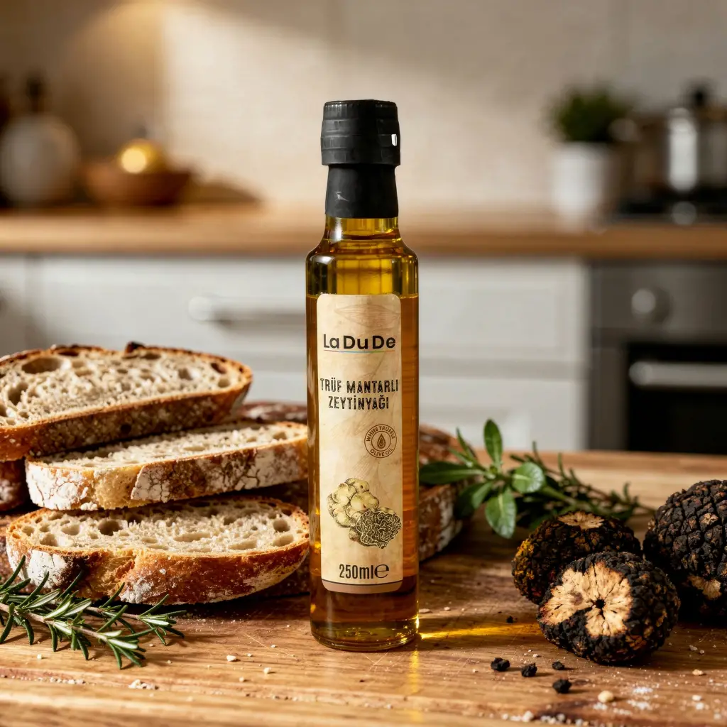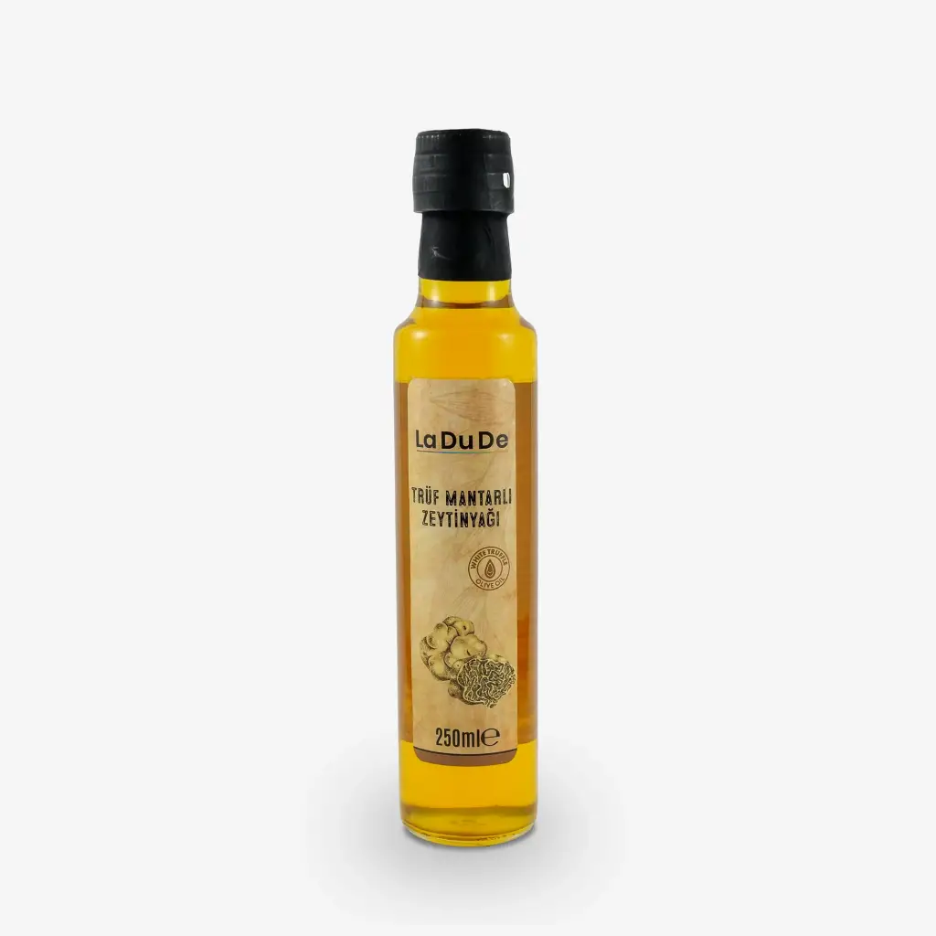 Gastronomi dünyasının en kıymetli aromalarından biri olan trüf mantarı, LA DU DE’nin naturel sızma zeytinyağıyla buluşarak sofistike bir lezzete dönüşüyor. Yoğun ve karakteristik kokusuyla bilinen trüf mantarı; zeytinyağının meyvemsi yapısını derinleştirir, yemeklere tek dokunuşta gurme bir kimlik kazandırır.Özenle aromalandırılan bu özel yağ; profesyonel mutfaklardan ev sofralarına kadar geniş bir kullanım alanı sunar. Az miktarı bile güçlü bir etki yaratarak, tabaklarınıza restoran kalitesinde bir imza atar.Ürün ve Ambalaj Bilgileri