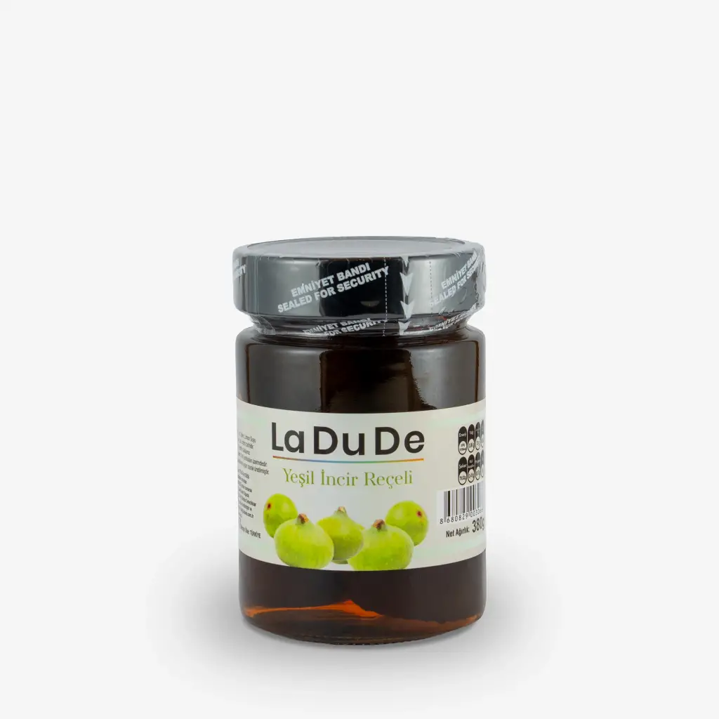 Ege’nin en seçkin ve zahmetli lezzetlerinden biri olan yeşil incir reçeli, LA DU DE ustalığıyla sofranıza konuk oluyor. Mevsiminde özenle toplanan taze ve küçük boy yeşil incirlerin tek tek kabukları soyularak hazırlanan bu reçel; uzun süreli haşlama, dinlendirme ve pişirme süreçlerinden geçer. Geleneksel yöntemlerle, katkısız ve tamamen doğal olarak hazırlanan LA DU DE Yeşil İncir Reçeli; tane tane kalan yapısı ve yoğun aromasıyla Seferihisar'ın nostaljik zarafetini yansıtır.